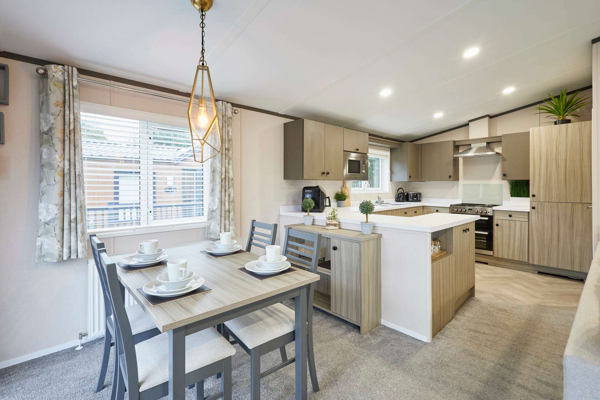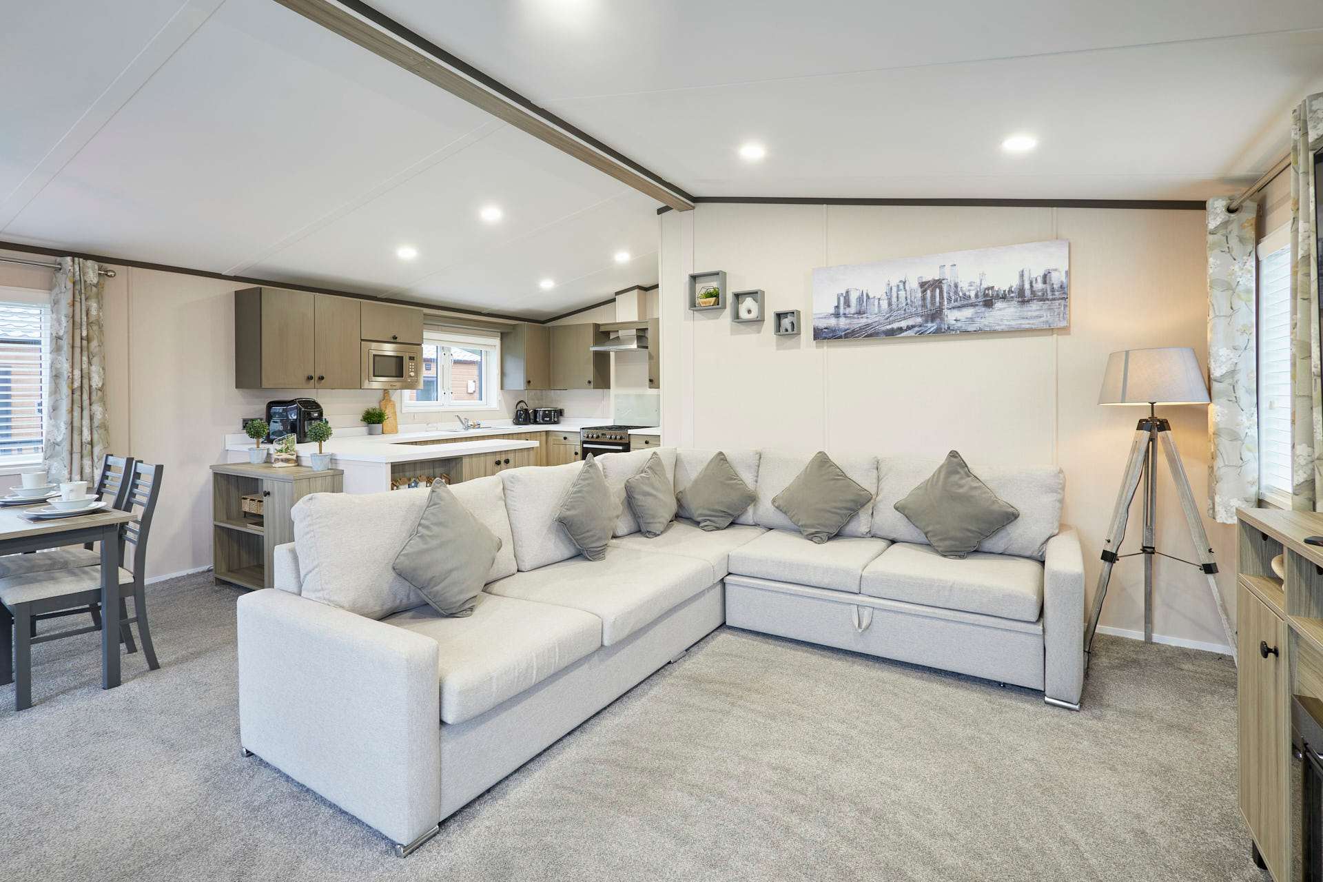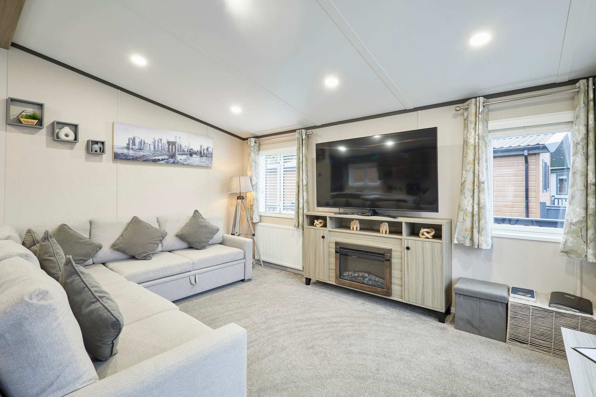 Nestled within the peaceful landscape of Allerthorpe Golf & Country Park, 20 Sandy Lane offers a modern and inviting countryside retreat. This beautifully presented two bedroom, two bathroom lodge sleeps up to six guests and provides the perfect setting for families, couples, or friends to relax and reconnect in nature. The open plan living area is bright and elegant, featuring soft neutral tones and stylish furnishings that create a warm and welcoming atmosphere. The fully equipped kitchen includes everything you need for a self catered stay, while the dining area is ideal for sharing leisurely meals or morning coffee. The lounge offers comfortable seating, a Smart TV, and large patio doors that flood the space with natural light and open out onto the private decking. Outside, the spacious terrace is designed for relaxation and comfort. Enjoy the luxurious hot tub, unwind on the outdoor seating, or simply take in the peaceful park surroundings. Whether it is a sunny afternoon or a quiet evening under the stars, this space is perfect for making memories. The master bedroom features a comfortable double bed and en suite bathroom, while the second bedroom offers twin beds ideal for friends or family. A second modern bathroom adds convenience for larger groups, and the sofa bed in the living area provides additional sleeping space if needed. 20 Sandy Lane is also dog friendly, so your four legged companions are welcome to join you on your countryside escape. With tranquil lakes, walking trails, and golf all within the park, this lodge combines comfort, nature, and relaxation in perfect balance.