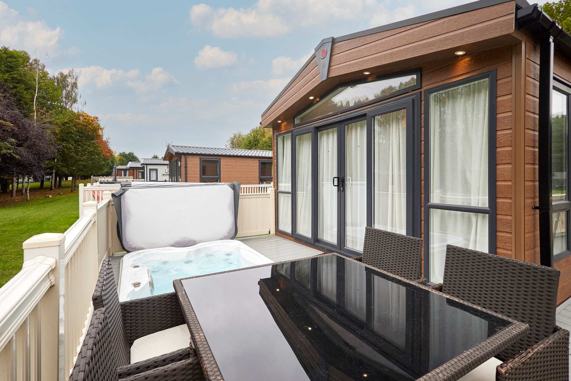 Guests will have access to their lodge from 4pm on their arrival date. Our on-site team will be on hand to support your check in and ensure you have everything you need for your stay. Please note that there is one parking space to the side of each lodge, this is to be used by one vehicle only. All other vehicles can drive to the lodge to drop-off luggage but must park their car in the main car park for the duration of their stay. There is strictly no parking on the grass at any times. Quiet times are between the hours of 10pm and 7am and we politely ask that you respect your neighbours when using the outdoor facilities during these hours to ensure everyone has an enjoyable time when staying with us. All guests can make use of the additional facilities at the Lodge Park. These include JJ's Bar & Grill, a Take-away Pizza Shack, 9 Hole Golf Course, Driving Range and Children's Play Park
