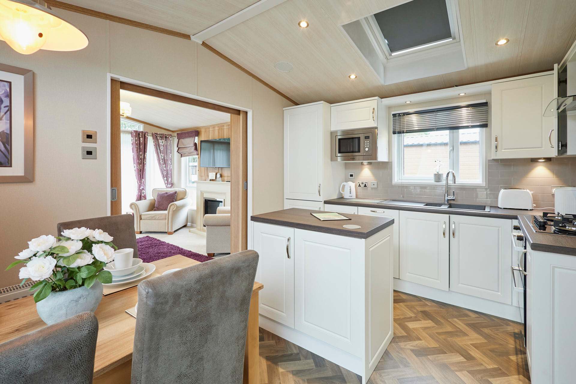 Welcome to Baker’s Lodge, a warm and welcoming two-bedroom retreat designed for peaceful escapes in the countryside. With one inviting double bedroom and a cosy twin room, this lodge offers a comfortable stay for up to four guests, complemented by two modern bathrooms for added convenience. Inside, you’ll find a homely open-plan living space, where soft furnishings, warm woods, and gentle lighting create a comforting and relaxed atmosphere. The living area features a charming indoor fireplace, perfect for cosy evenings in after a day exploring. A fully equipped kitchen and dining space provide everything you need for relaxed meals and slow mornings, while thoughtful touches throughout the lodge help you settle in from the moment you arrive. Outside, step onto your private terrace complete with a soothing hot tub and views across the manicured grounds. It’s an ideal spot to enjoy a peaceful coffee at sunrise or unwind under the stars, the perfect blend of comfort and tranquillity. Quiet, private, and beautifully kept, Baker’s Lodge offers a calming countryside getaway where you can truly rest, recharge, and enjoy quality time in serene surroundings. This is a space made for gentle mornings, cosy evenings, and easy, unhurried days.