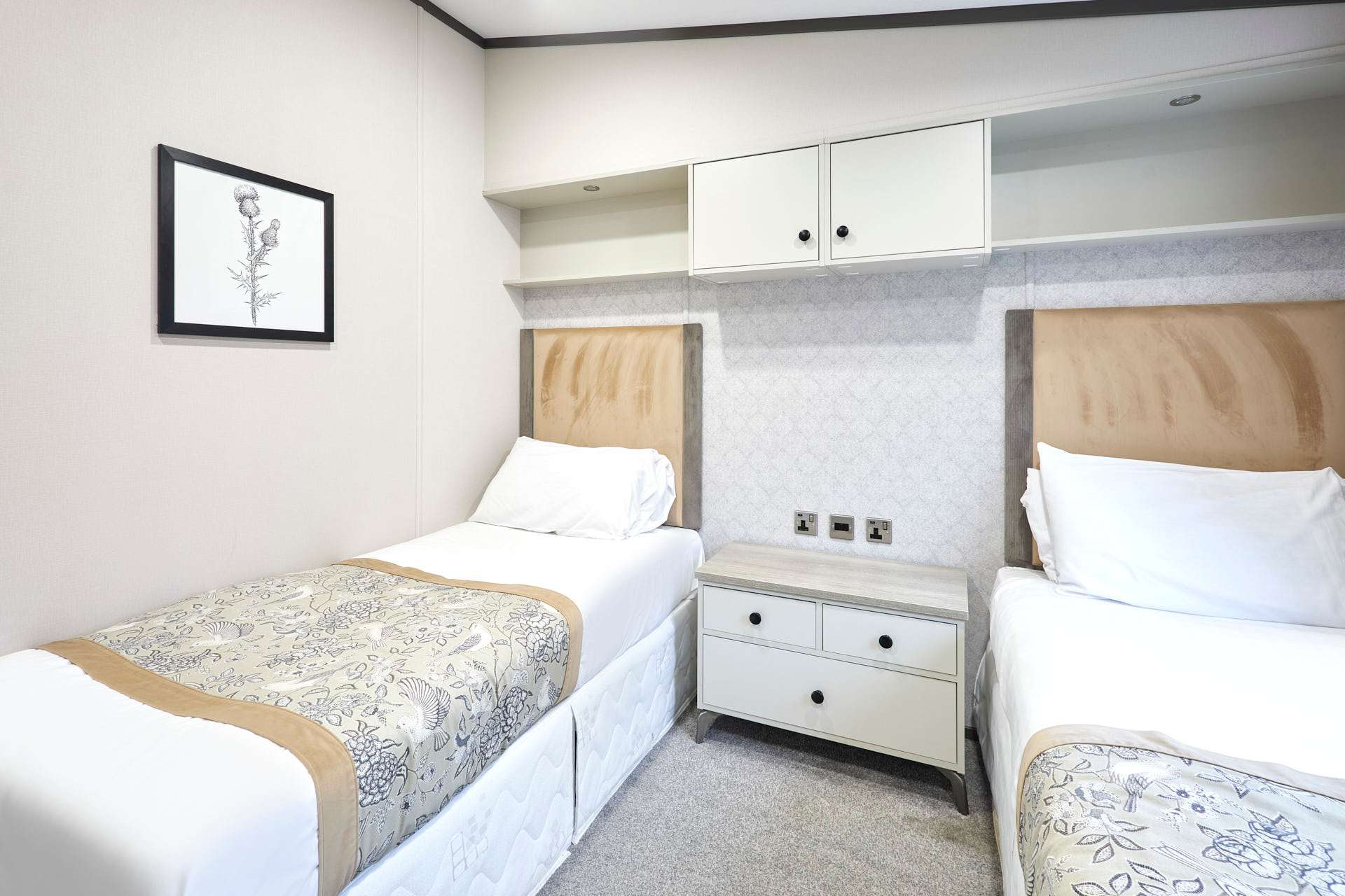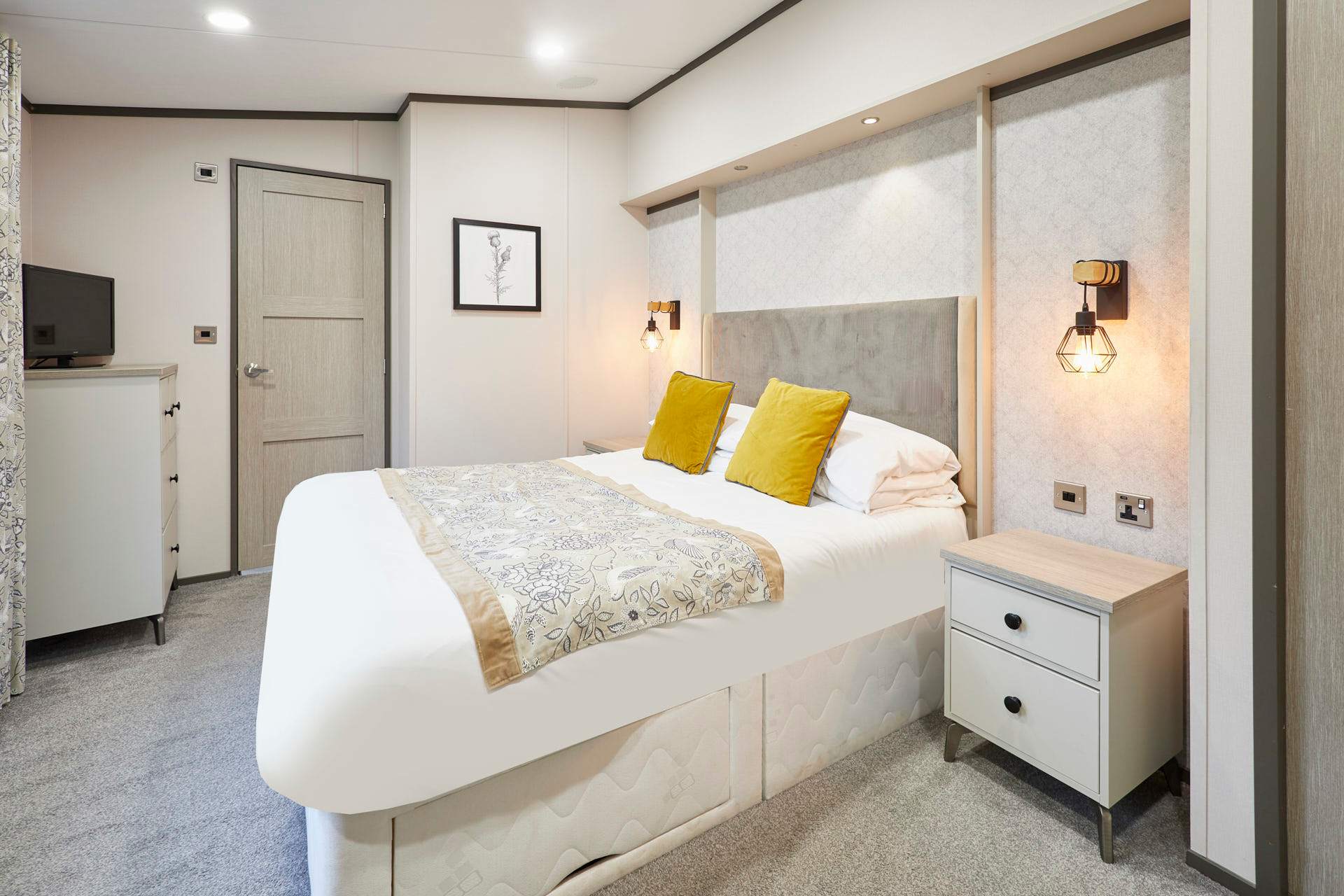 Brackencroft Lodge is a peaceful two-bedroom retreat sleeping six, with a spacious open-plan living area, stylish decor and cosy fireplace. Enjoy a fully equipped kitchen, washing machine, two modern bathrooms and garden views from the private terrace. Calm, welcoming and perfect for relaxed breaks with family or friends.