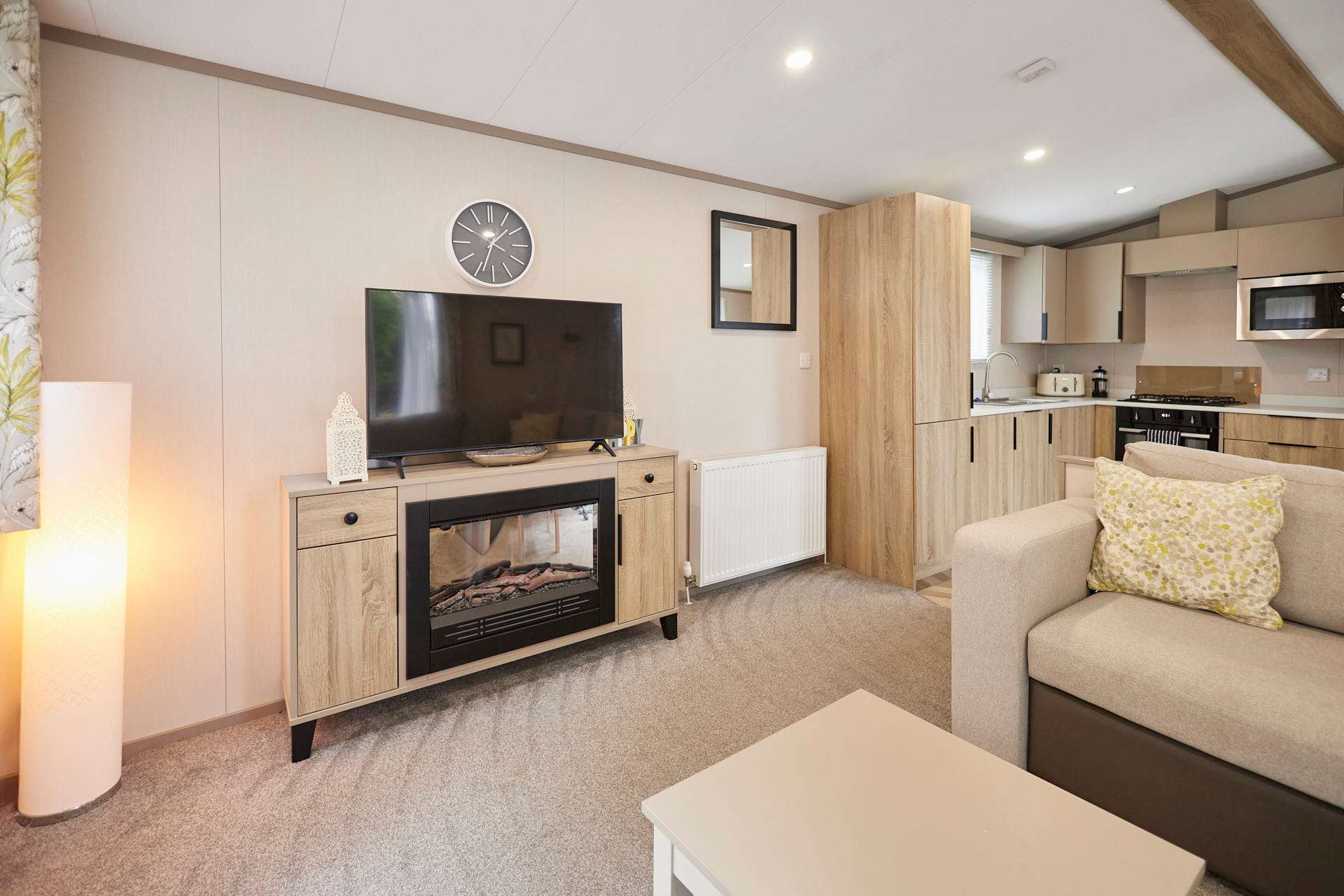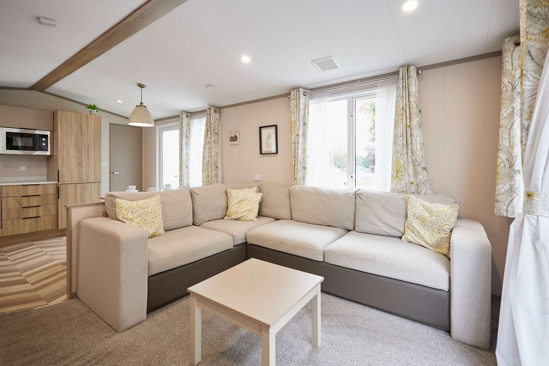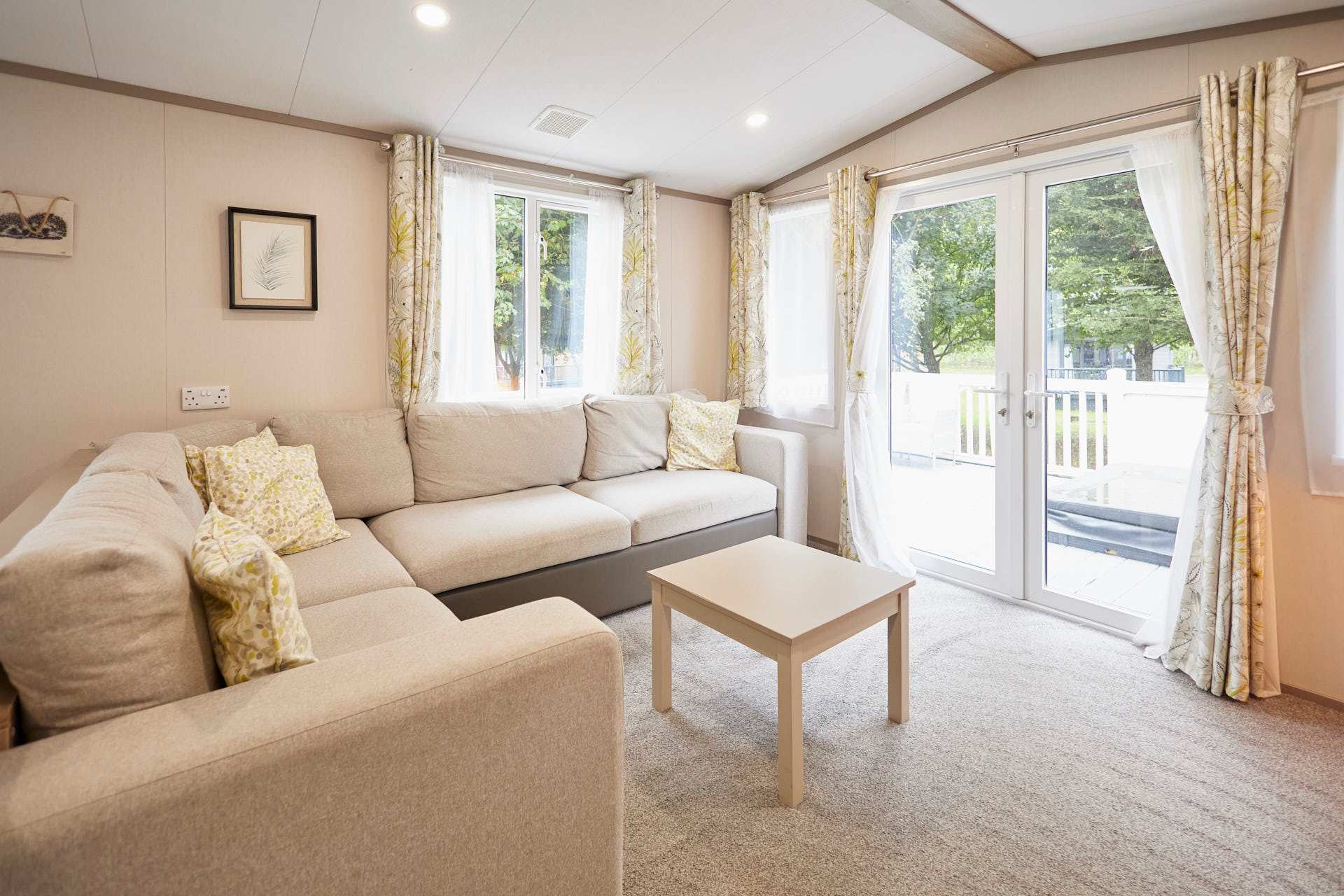 Welcome to Stone Beck Lodge, a peaceful two-bedroom retreat designed for a cosy and comfortable getaway. Sleeping up to six guests, the lodge includes a calming double bedroom, a light and airy twin room, and an additional sofa bed in the main living area, offering flexibility for families or small groups. Inside, the space feels warm and inviting, with soft tones, thoughtful touches and an effortless, homely feel throughout. The open-plan living and dining space provides a relaxed setting to unwind after a day exploring, while the well-equipped kitchen has everything needed for home-cooked meals and easy mornings. Large windows draw in natural light and look out onto tranquil woodland-style greenery, giving the lodge a bright yet soothing atmosphere. Outside, the private decking area offers a peaceful spot for morning coffee or an evening drink, framed by lovely wooded grassland views. The lodge sits within a quiet park setting, with open green space and family-friendly surroundings that invite you to slow down, breathe, and enjoy time together. Beautifully presented and thoughtfully set up, Stone Beck Lodge is the ideal base for unwinding, reconnecting, and enjoying restful days in a calm countryside setting.