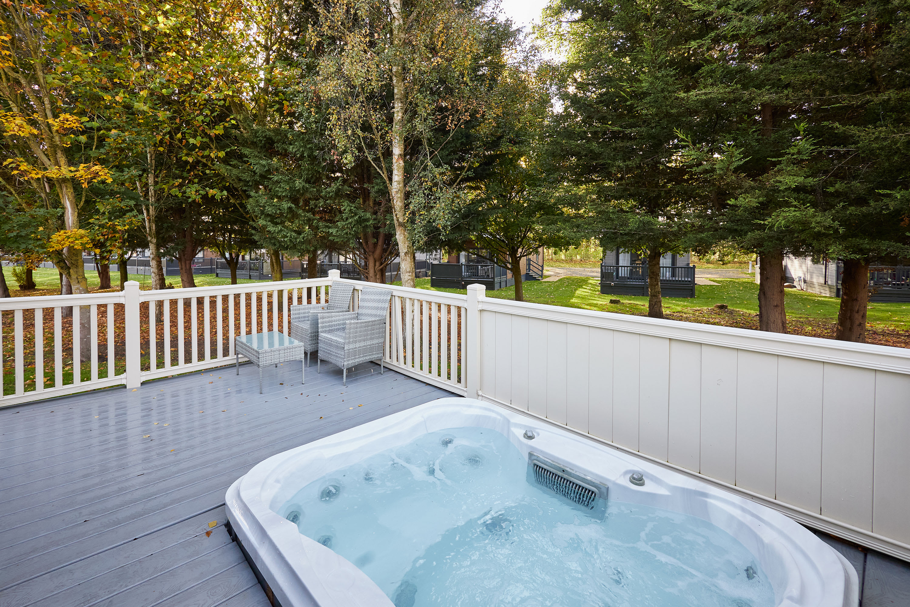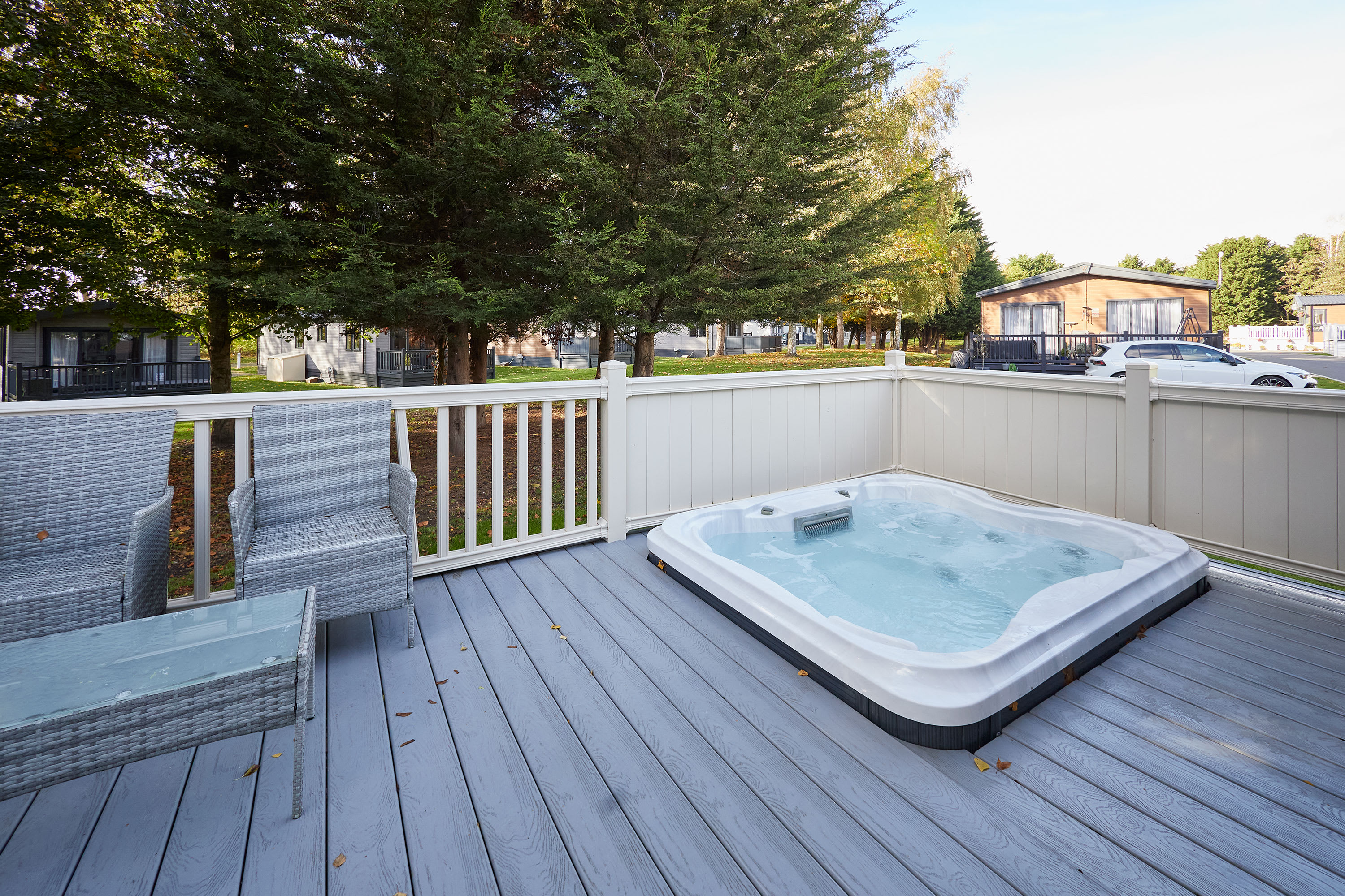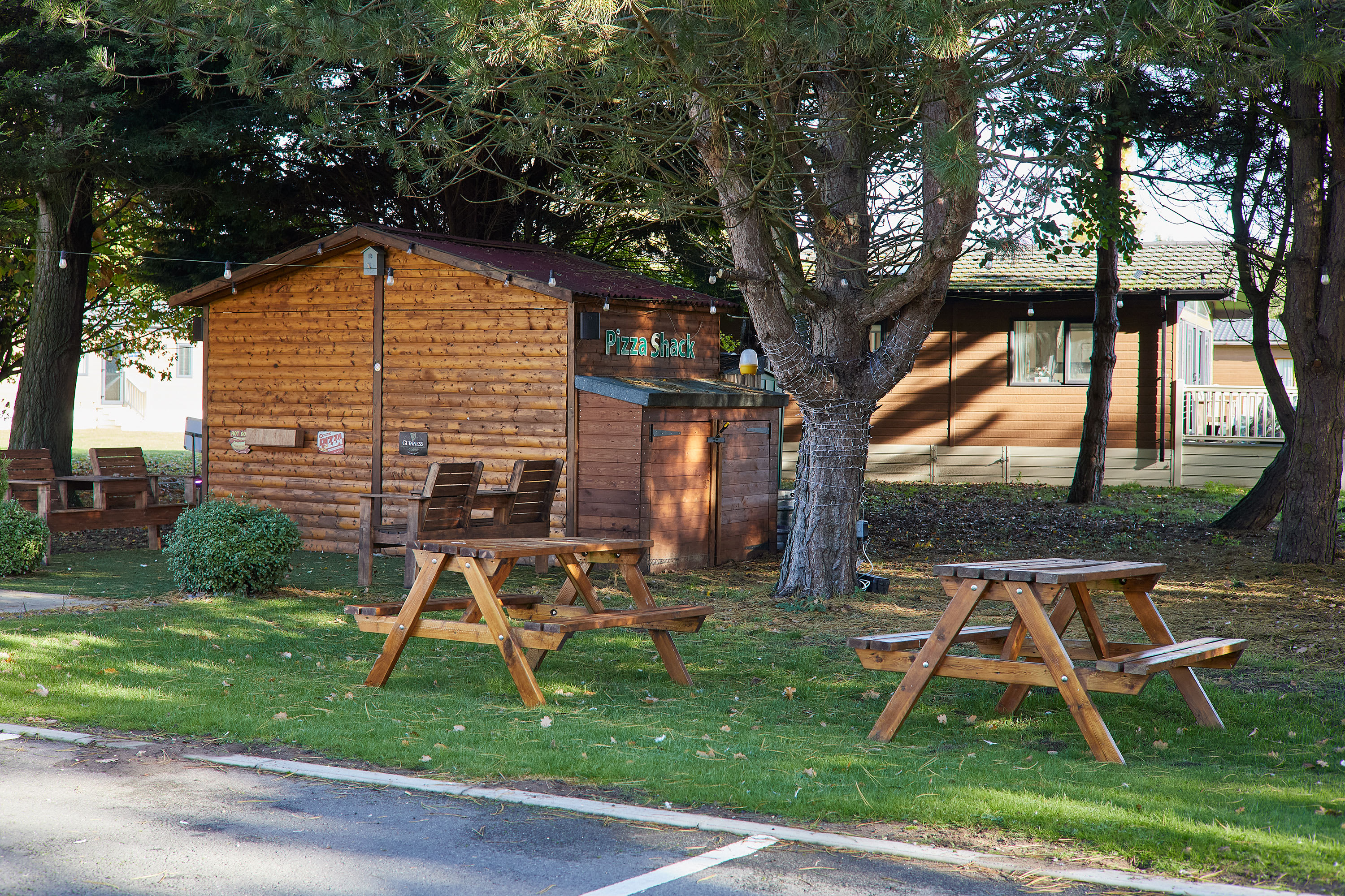 Guests will have access to their lodge from 4pm on their arrival date. Our on-site team will be on hand to support your check in and ensure you have everything you need for your stay. Please note that there is one parking space to the side of each lodge, this is to be used by one vehicle only. All other vehicles can drive to the lodge to drop-off luggage but must park their car in the main car park for the duration of their stay. There is strictly no parking on the grass at any times. Quiet times are between the hours of 10pm and 7am and we politely ask that you respect your neighbours when using the outdoor facilities during these hours to ensure everyone has an enjoyable time when staying with us. All guests can make use of the additional facilities at the Lodge Park. These include JJ's Bar & Grill, a Take-away Pizza Shack, 9 Hole Golf Course, Driving Range and Children's Play Park