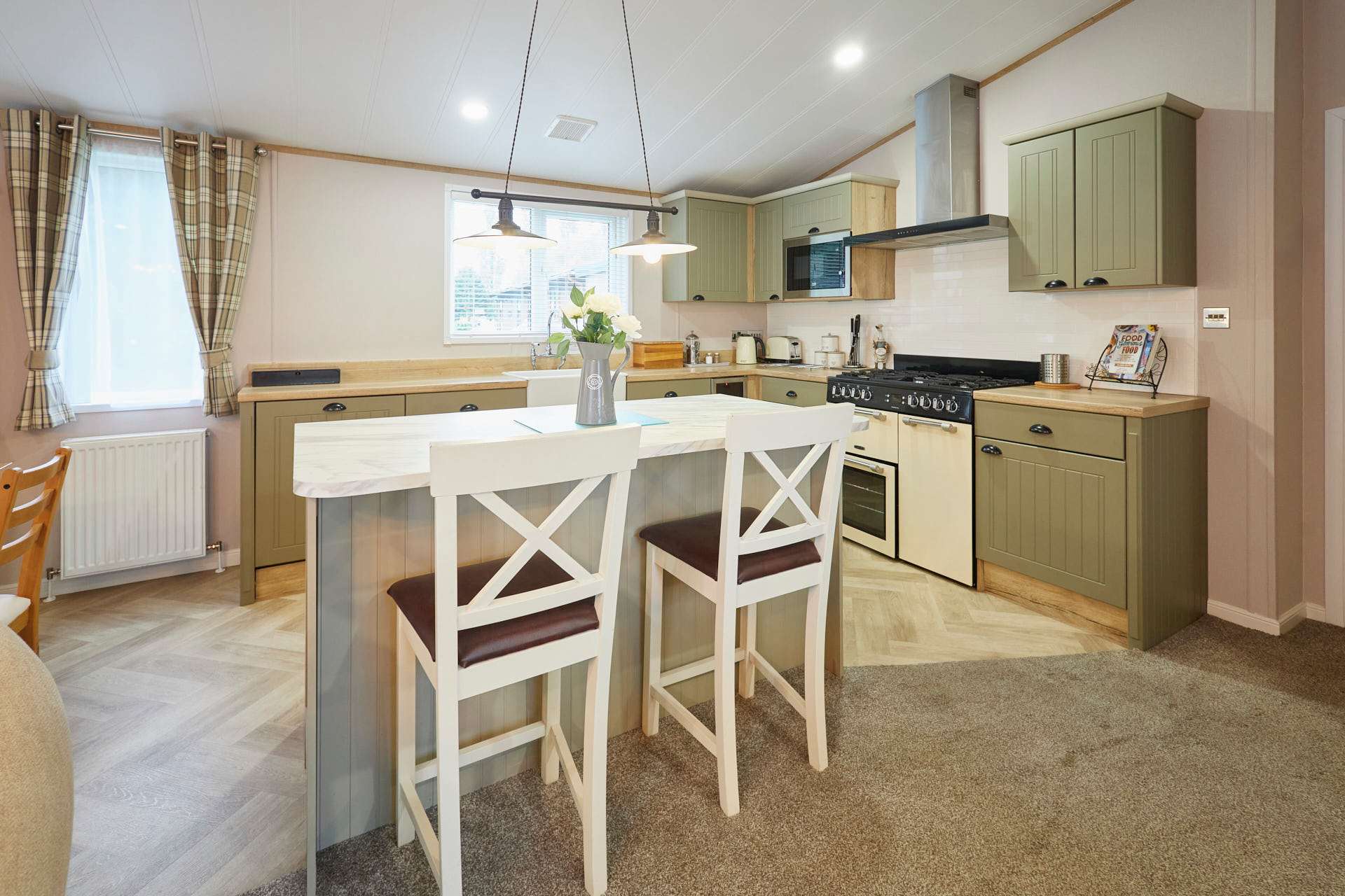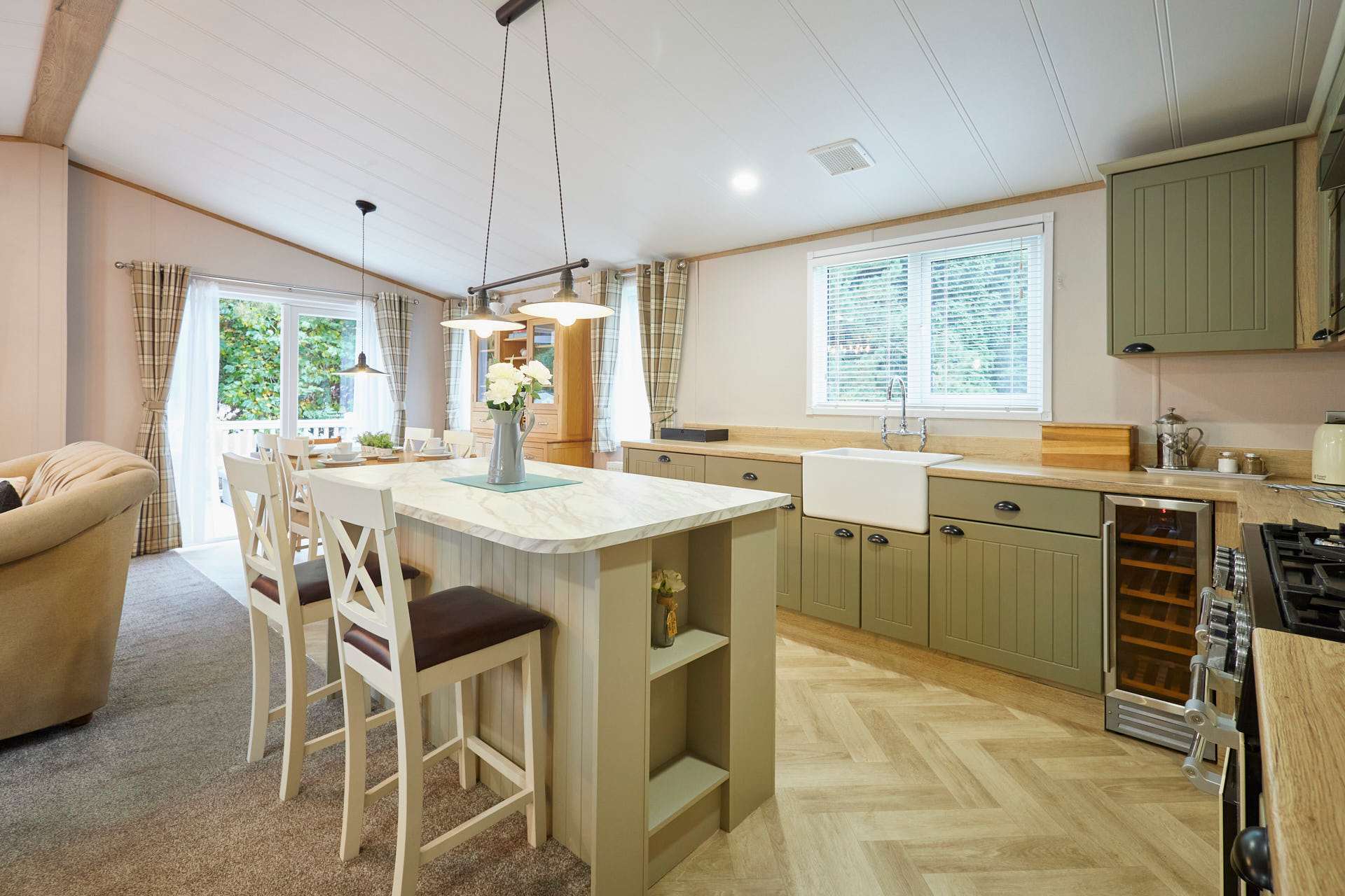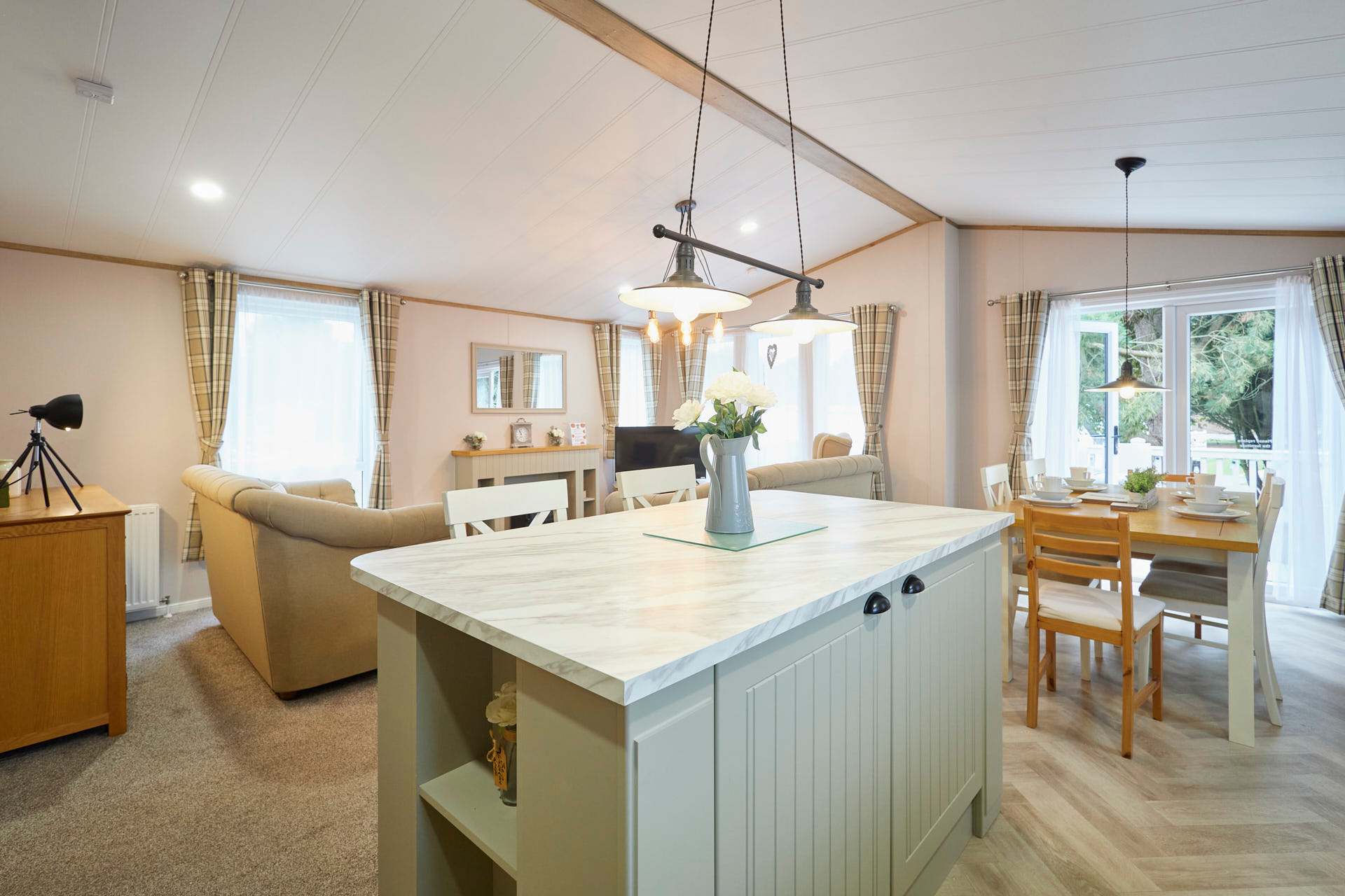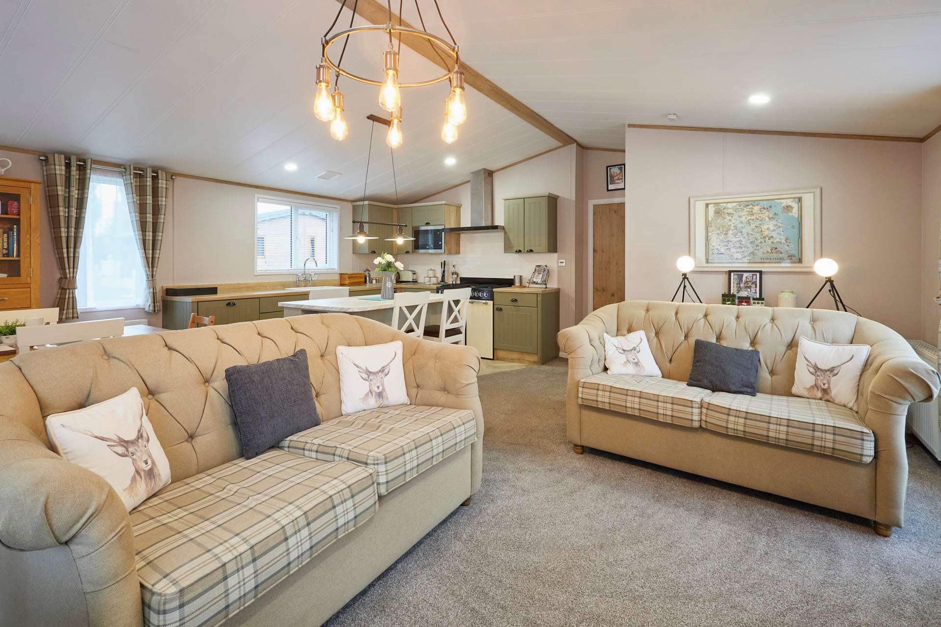 Welcome to White Rose Lodge, a beautifully finished two-bedroom retreat nestled within Allerthorpe Golf and Country Park. This inviting lodge combines modern comfort with homely touches, creating the perfect setting for a relaxing escape with family or friends. Sleeping up to six guests, the lodge features a double bedroom, a twin room, and a comfortable sofa bed in the living area. With two bathrooms; one with a bath and one with a shower the,re’s plenty of space for everyone to unwind. The open-plan living space is bright and thoughtfully designed, with a cosy fireplace and soft furnishings that make it easy to settle in. The fully equipped kitchen includes everything you need for a stress-free stay, a stovetop, oven, refrigerator, dishwasher, coffee maker, and dining table, ideal for shared meals or morning coffees. Outside, a private terrace and bubbling hot tub offer the perfect place to relax and take in the peaceful garden views. With a private entrance, washing machine, and pet-friendly policy, White Rose Lodge makes every detail of your stay feel effortless. This is a place to slow down, reconnect, and enjoy the simple pleasures of lodge living, warm, inviting, and designed for comfort.