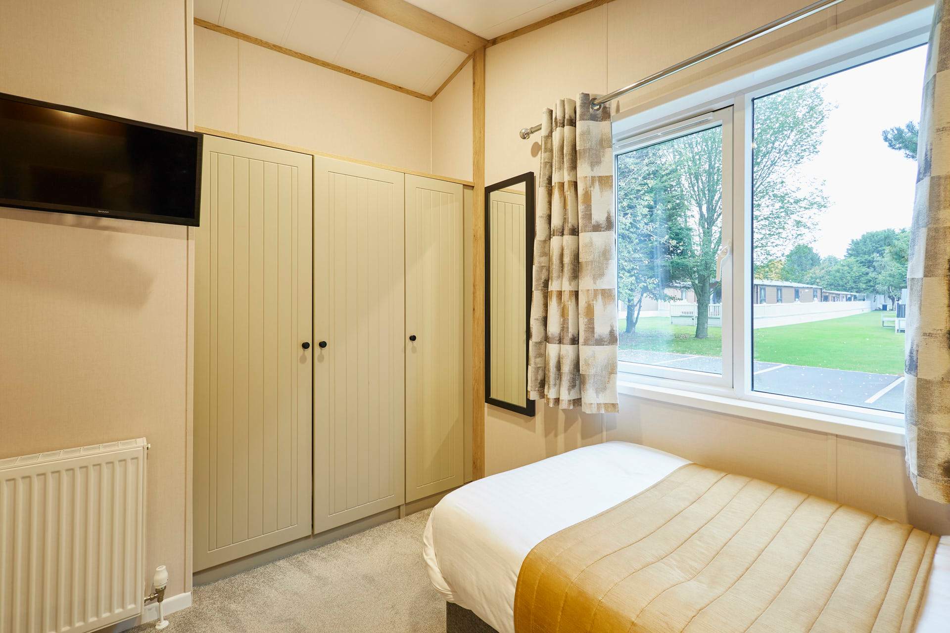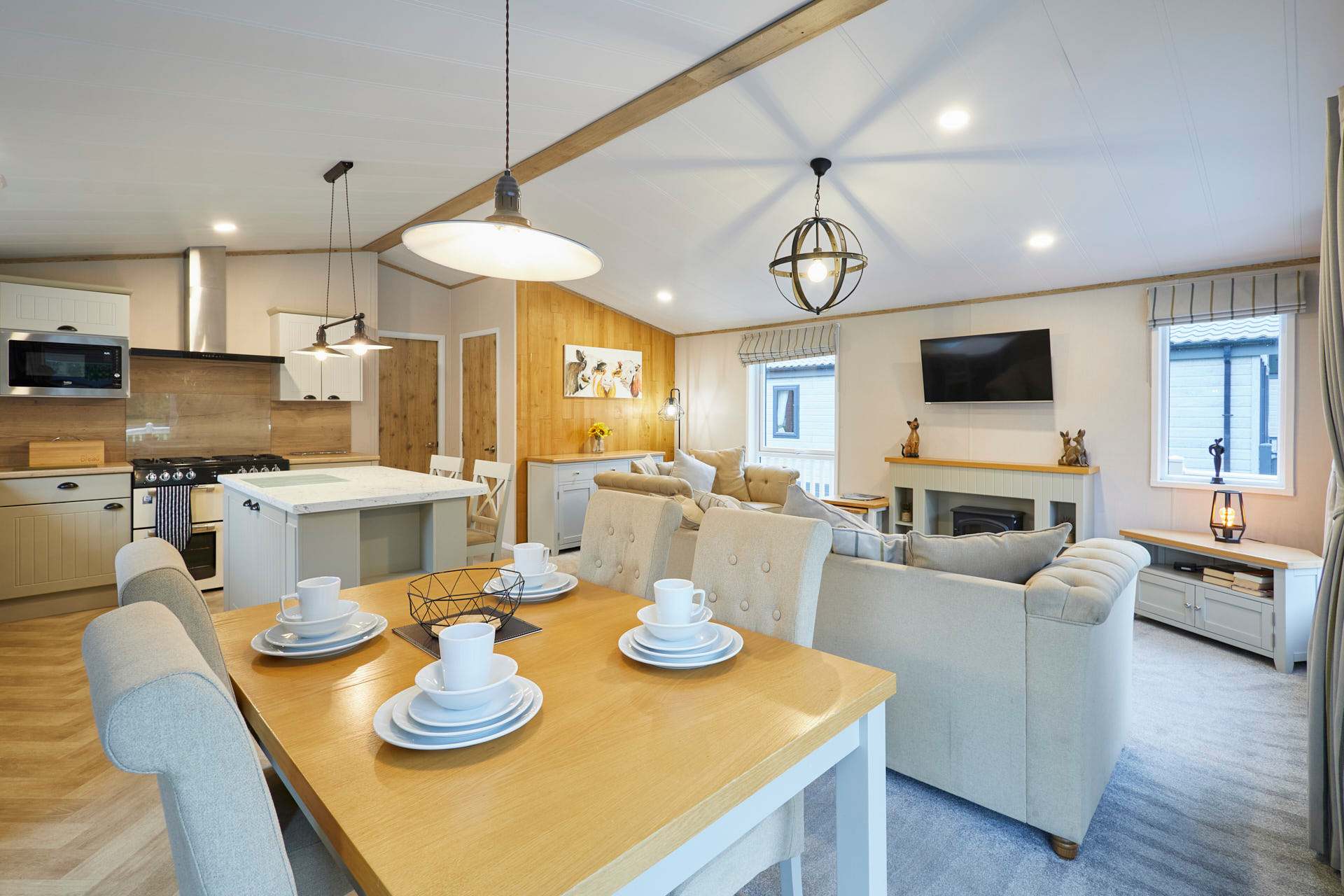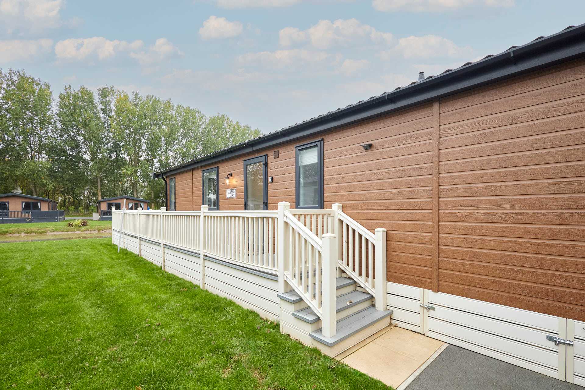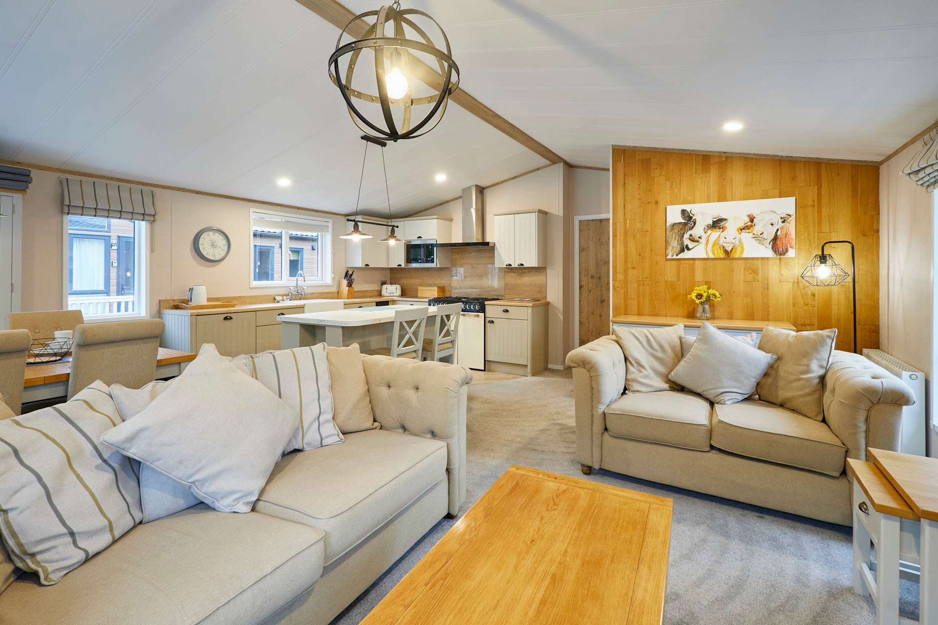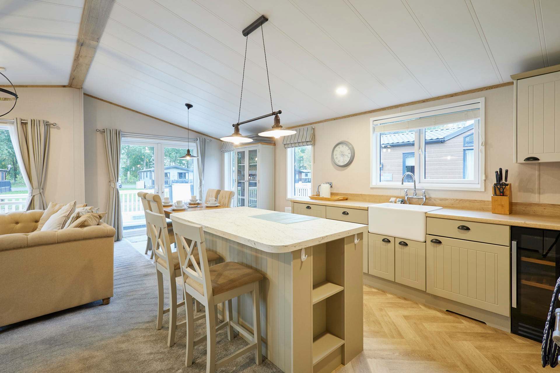 Welcome to Water’s Edge Lodge, a beautifully presented two-bedroom retreat set right beside the tranquil lakeside at Allerthorpe Golf & Country Park. Perfect for peaceful escapes, this lodge sleeps up to four guests, featuring a serene double bedroom and a cosy twin room, along with two modern bathrooms, one with a relaxing bathtub for long soaks after a day outdoors. The open-plan living area is warm, stylish, and thoughtfully furnished, with soft tones and natural textures that create a calming atmosphere. Enjoy slow mornings with coffee at the dining table, unwind by the cosy lounge seating, and prepare home-cooked meals in the fully equipped kitchen, complete with everything you need for a relaxed stay. Step outside onto the large private terrace, where you can take in serene lake views and enjoy true relaxation from your own private hot tub. From sunrise reflections over the water to peaceful evenings under the stars, this scenic outdoor space is a highlight of the stay. With its quiet setting, comfortable interiors, and idyllic lakeside position, Water’s Edge Lodge offers an inviting retreat where you can switch off, slow down, and enjoy nature right on your doorstep. A perfect place to restore and reconnect in calm surroundings.