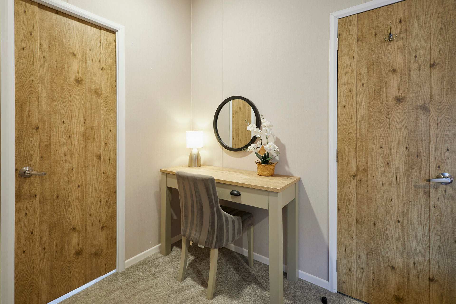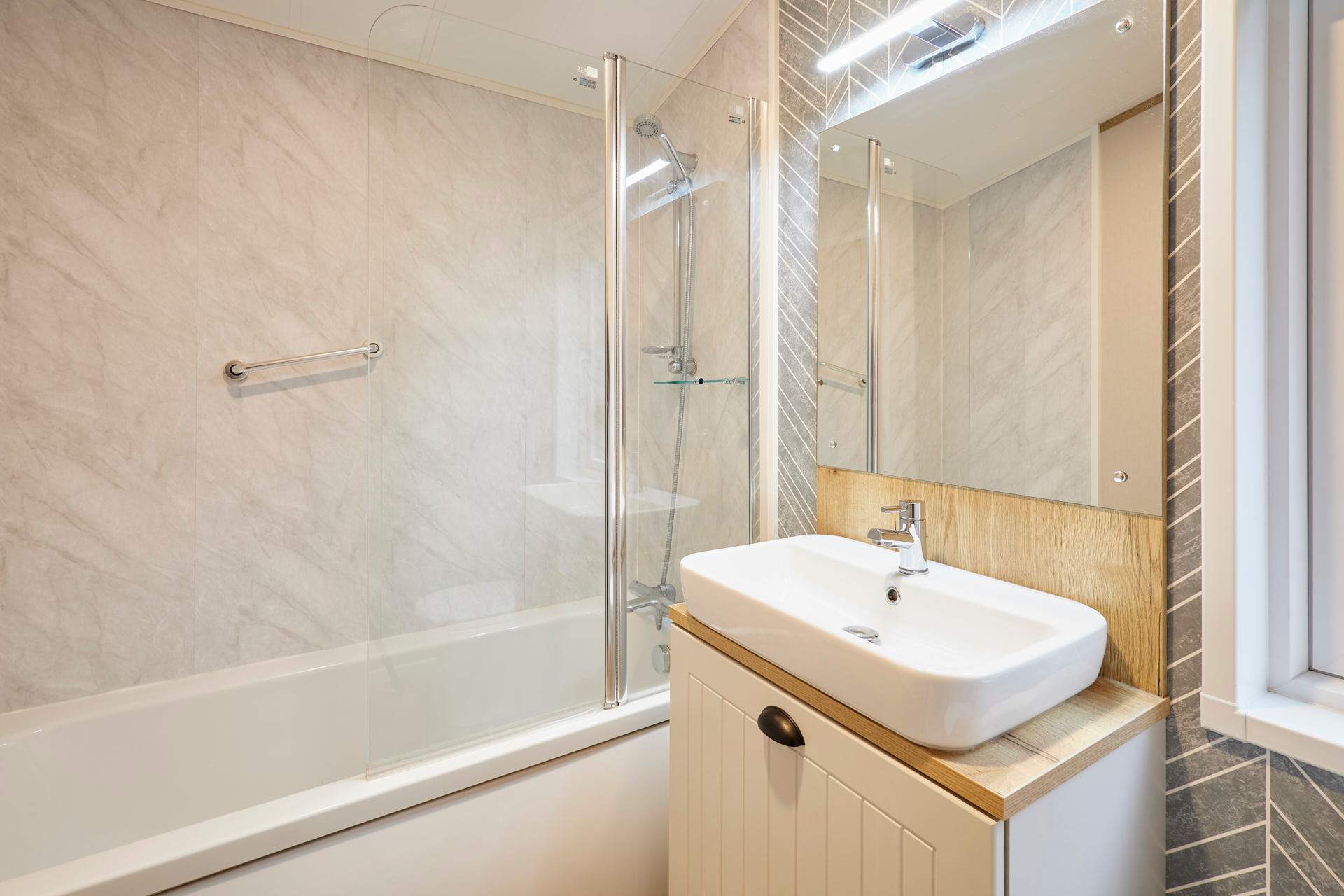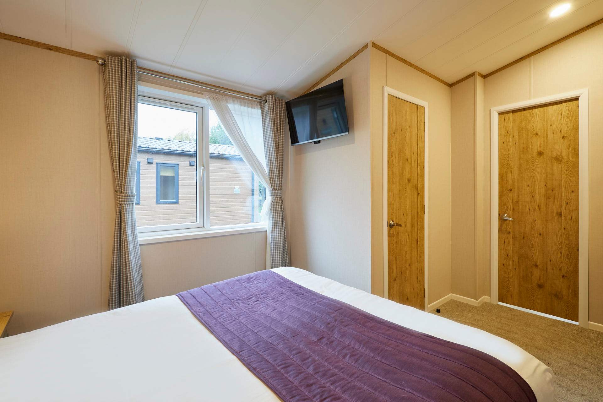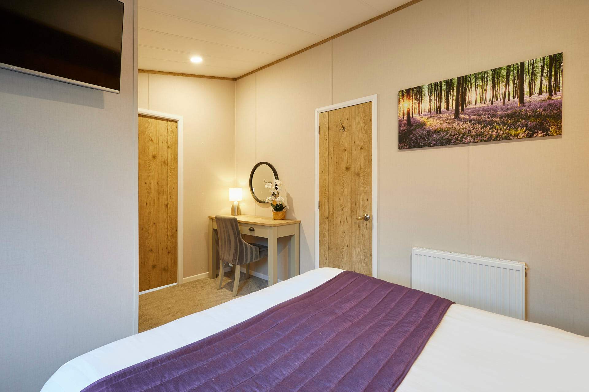 Welcome to Water’s Edge Lodge, a beautifully presented two-bedroom retreat set right beside the tranquil lakeside at Allerthorpe Golf & Country Park. Perfect for peaceful escapes, this lodge sleeps up to four guests, featuring a serene double bedroom and a cosy twin room, along with two modern bathrooms, one with a relaxing bathtub for long soaks after a day outdoors. The open-plan living area is warm, stylish, and thoughtfully furnished, with soft tones and natural textures that create a calming atmosphere. Enjoy slow mornings with coffee at the dining table, unwind by the cosy lounge seating, and prepare home-cooked meals in the fully equipped kitchen, complete with everything you need for a relaxed stay. Step outside onto the large private terrace, where you can take in serene lake views and enjoy true relaxation from your own private hot tub. From sunrise reflections over the water to peaceful evenings under the stars, this scenic outdoor space is a highlight of the stay. With its quiet setting, comfortable interiors, and idyllic lakeside position, Water’s Edge Lodge offers an inviting retreat where you can switch off, slow down, and enjoy nature right on your doorstep. A perfect place to restore and reconnect in calm surroundings.