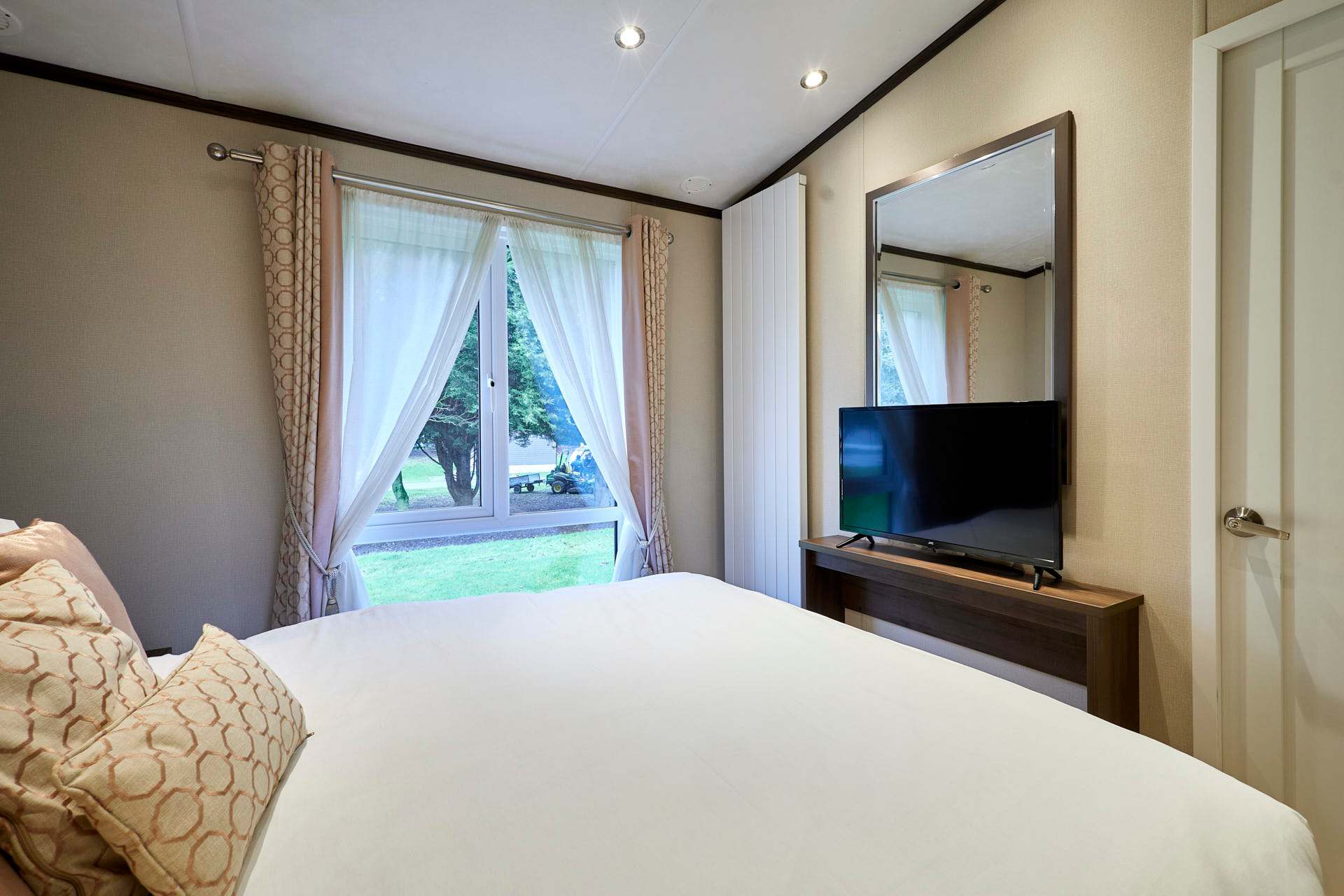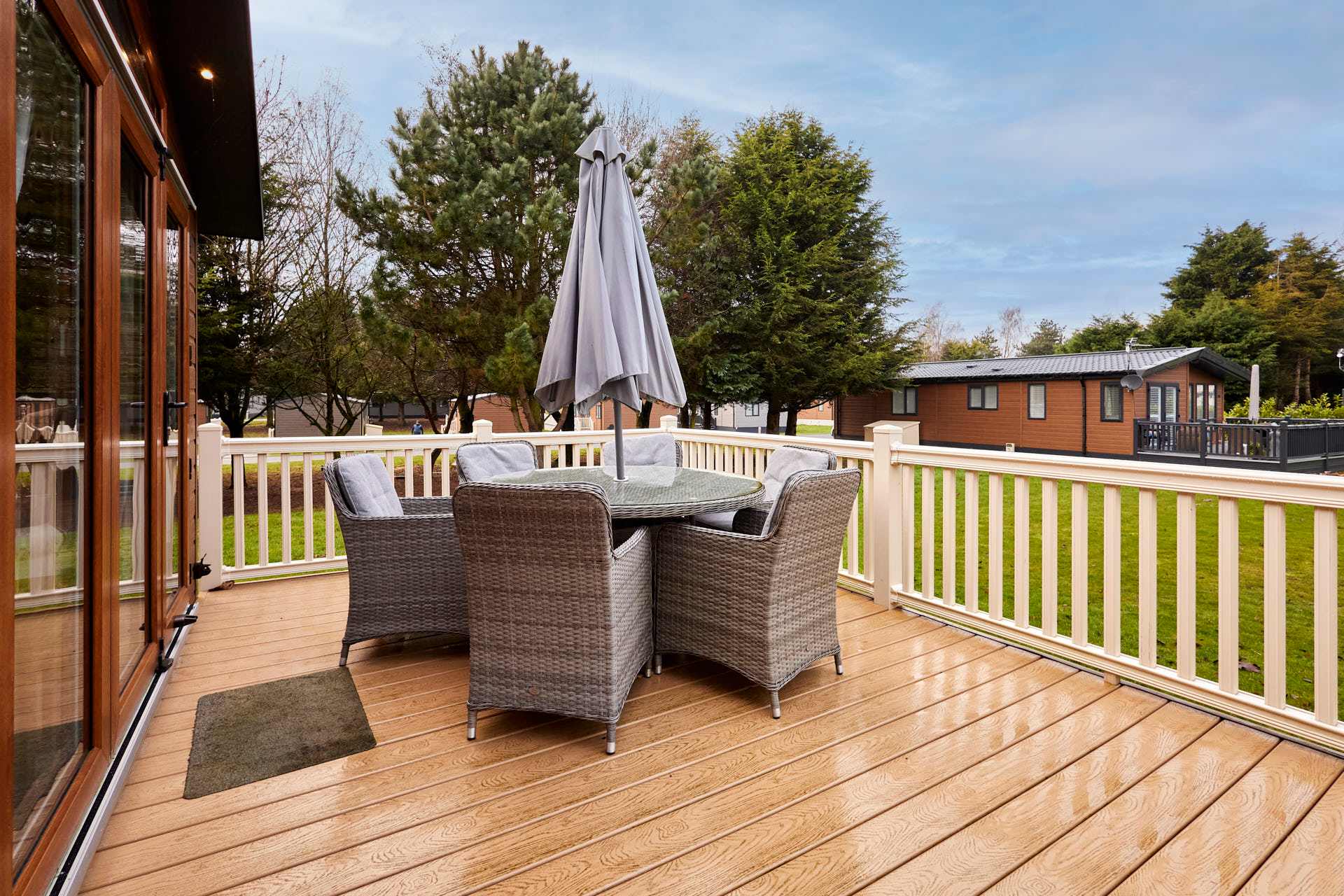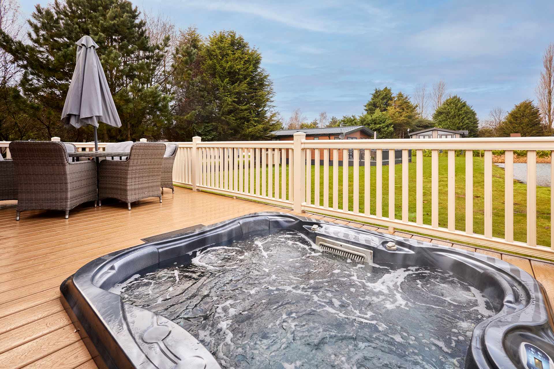 Guests will have access to their lodge from 4pm on their arrival date. Our on-site team will be on hand to support your check in and ensure you have everything you need for your stay. Please note that there is one parking space to the side of each lodge, this is to be used by one vehicle only. All other vehicles can drive to the lodge to drop-off luggage but must park their car in the main car park for the duration of their stay. There is strictly no parking on the grass at any times. Quiet times are between the hours of 10pm and 7am and we politely ask that you respect your neighbours when using the outdoor facilities during these hours to ensure everyone has an enjoyable time when staying with us. Please note that the park is Dog Friendly but we ask that all dogs are kept on a lead at all times when on the park site. All guests can make use of the additional facilities at the Lodge Park. These include JJ's Bar & Grill, a Take-away Pizza Shack, 9 Hole Golf Course, Driving Range and Children's Play Park