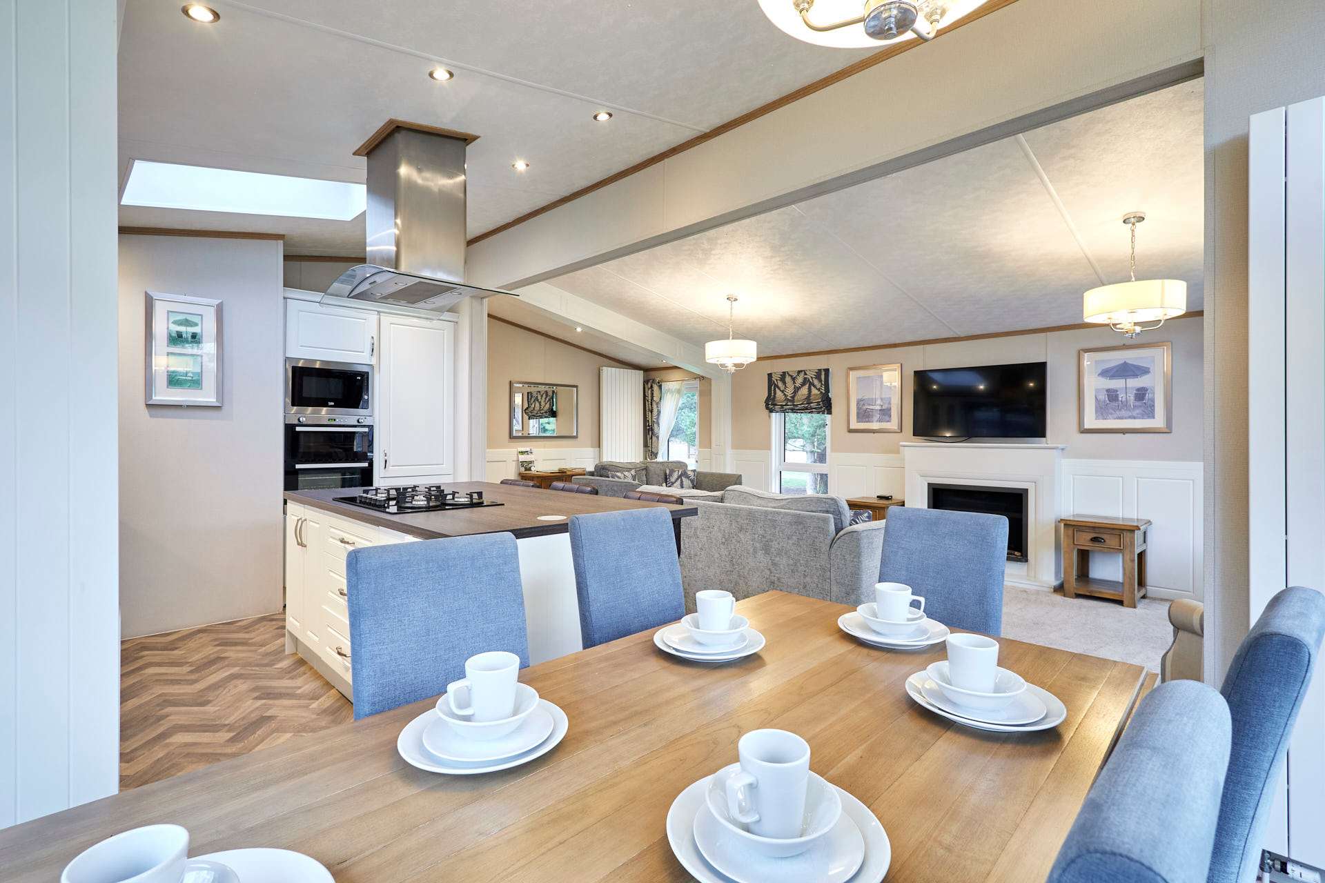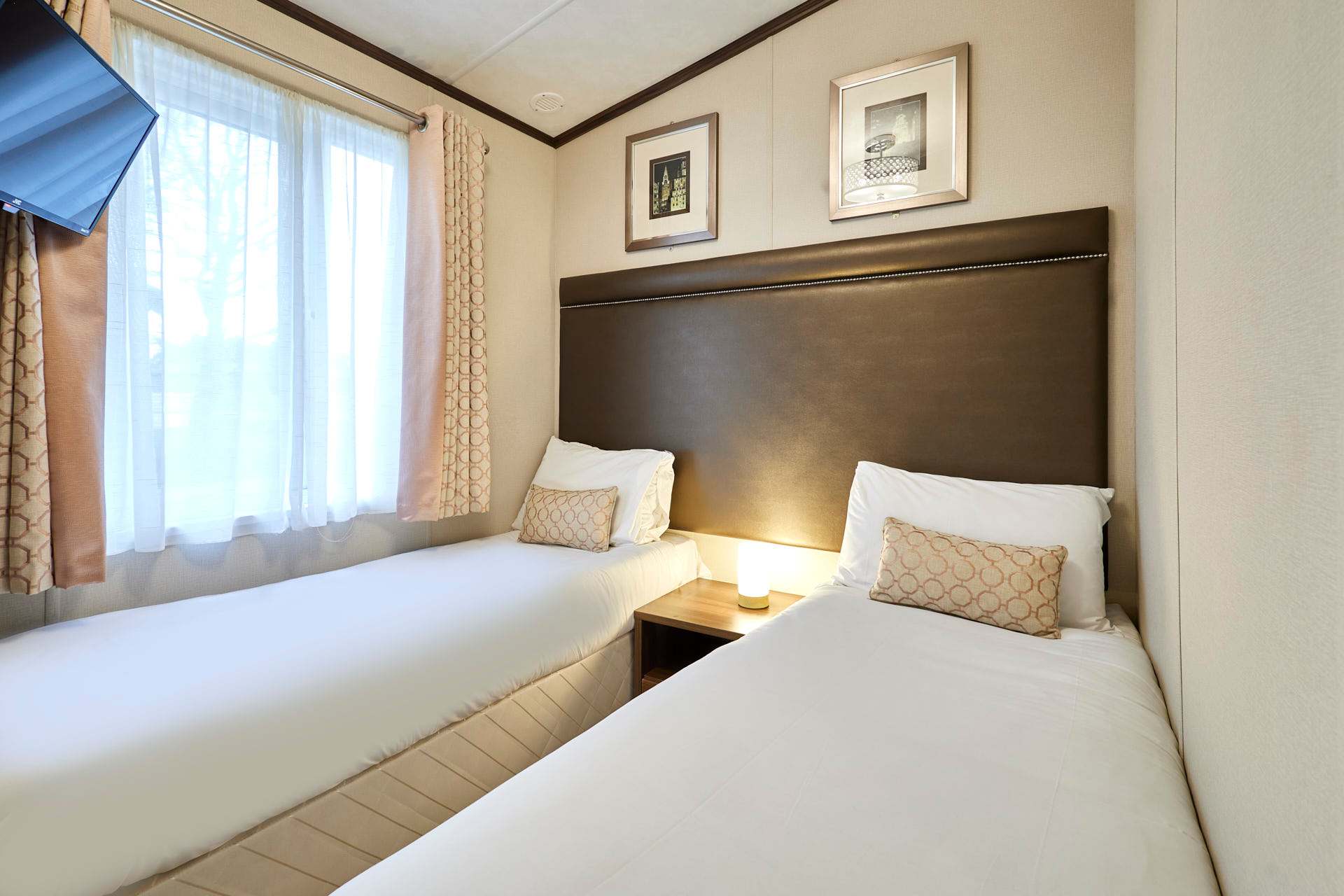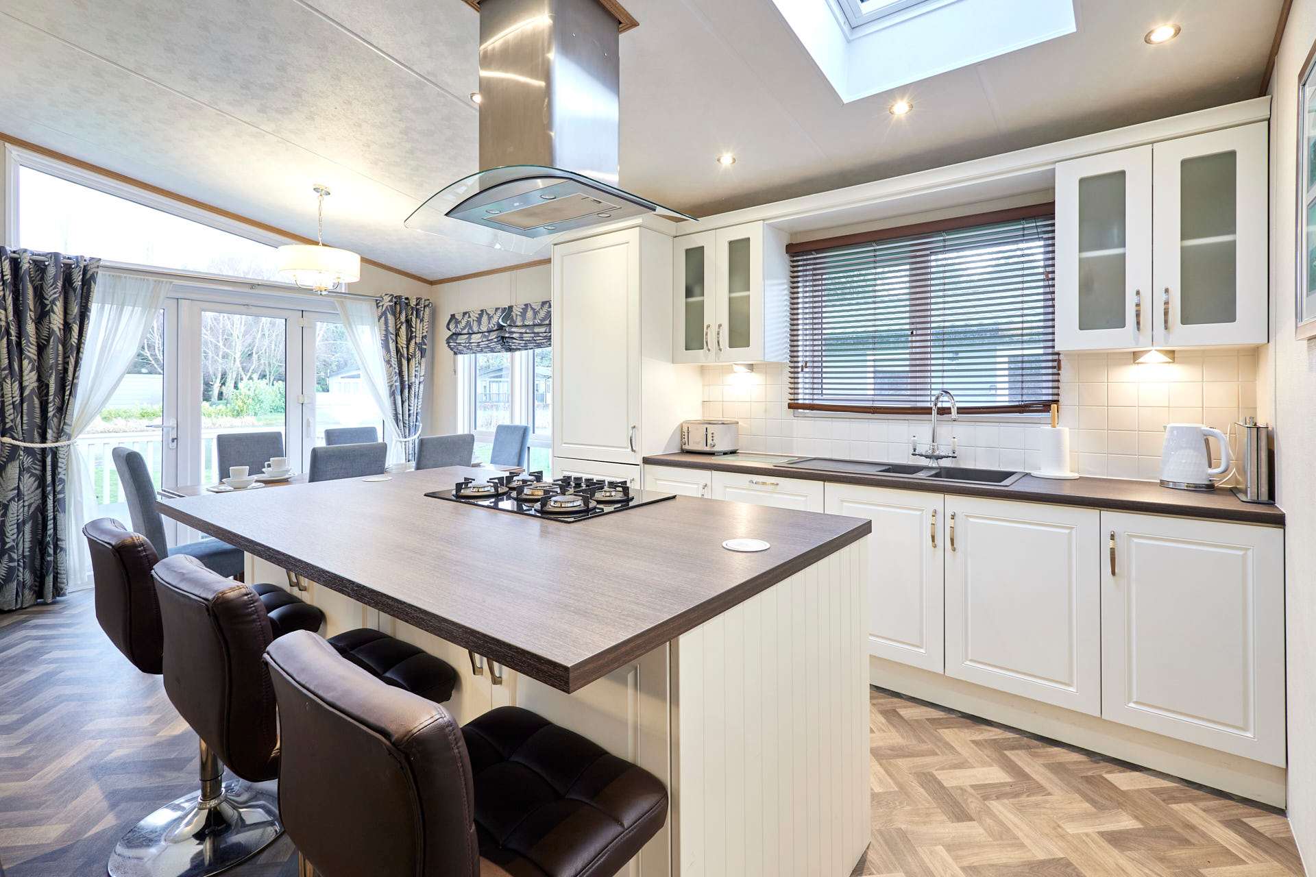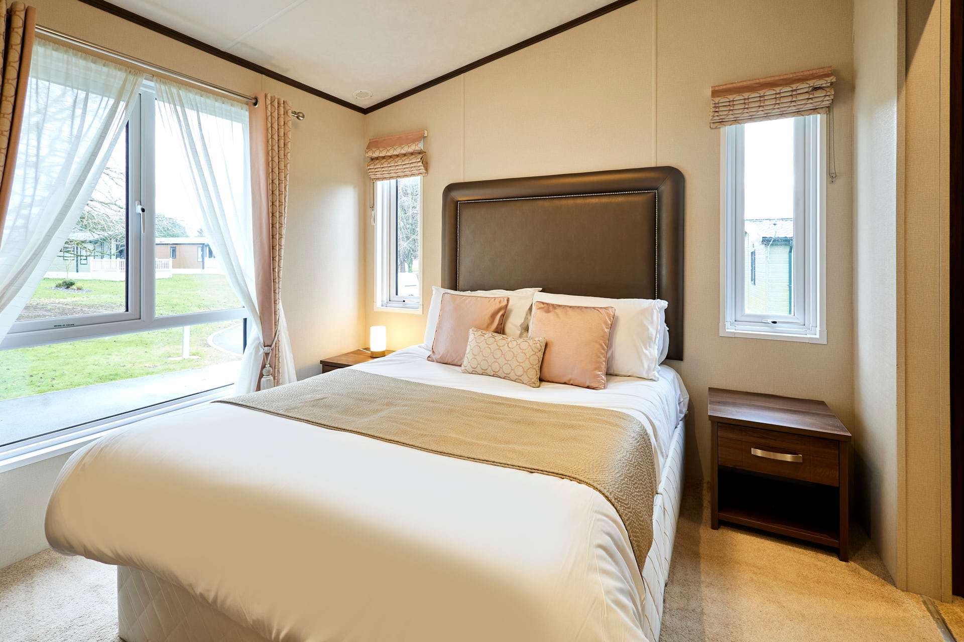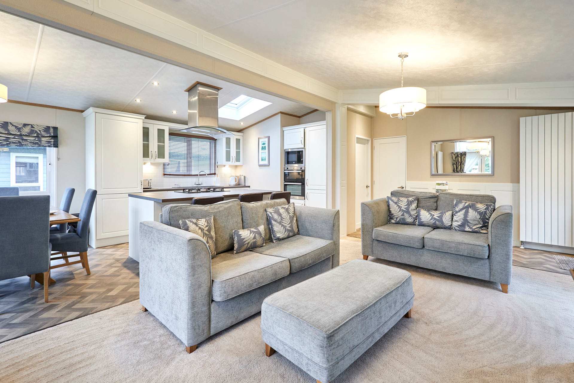 The heart of Bramble Lodge is the bright, open-plan living area, designed for both comfort and connection. Large windows fill the space with natural light and provide scenic views of the surrounding countryside, creating a calm and airy feel throughout. The cozy lounge area is perfect for relaxing after a day of exploring, whether you’re enjoying a quiet evening in, watching TV, or sharing stories over a drink. The dining area flows seamlessly into the fully equipped kitchen, making mealtimes easy and enjoyable. With modern appliances and all the essentials provided, the kitchen is well suited for everything from quick breakfasts to home-cooked family dinners or longer stays. Bramble Lodge offers three comfortable bedrooms, thoughtfully arranged to accommodate families or groups with ease. Each bedroom features soft furnishings, fresh linens, and practical storage, creating a restful space for a great night’s sleep. The lodge also includes two modern bathrooms, offering added convenience and privacy for larger groups ideal for busy mornings or relaxing evenings after a day outdoors. Surrounded by tranquil countryside, Bramble Lodge is perfectly positioned for peaceful walks, fresh air, and moments of calm in nature. It’s an ideal spot to enjoy the slower pace of rural life while still having plenty to explore nearby.